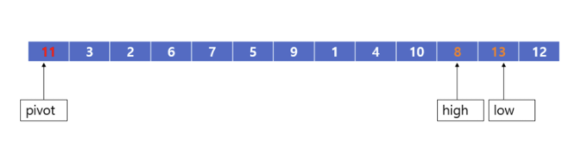 - pivot의 오른쪽의 인덱스를 low로 설정하고 리스트의 맨 마지막 인덱스를 high로 설정합니다.