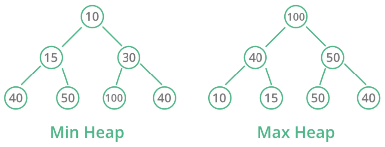 최소힙(min heap property) : 부모는 자식보다 작거나 같다. → 최소값을 찾는데 시간복잡도 O(1)